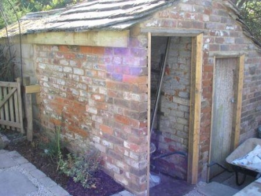 The old steps were rebuilt to make them a feature within the garden and the brick outhouse was repaired, The storage area under the balcony was tidied up and screened with wooden gates.