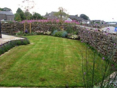 The planting for this newly built house in Clapham was designed to screen neighbouring houses to the side with trees and shrubs, while lower-growing grasses and perennials were used in the border adjacent to the fields, to keep the open aspect. Perennials were used to fill the gaps between the shrubs and they made a terrific show in the first year after planting.