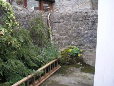 This very small yard is the only garden area of a characterful listed cottage in Langcliffe. Although it is surrounded with buildings and high walls, it receives a surprising amount of sunshine in the summer months and had the potential to be turned into an attractive retreat.
